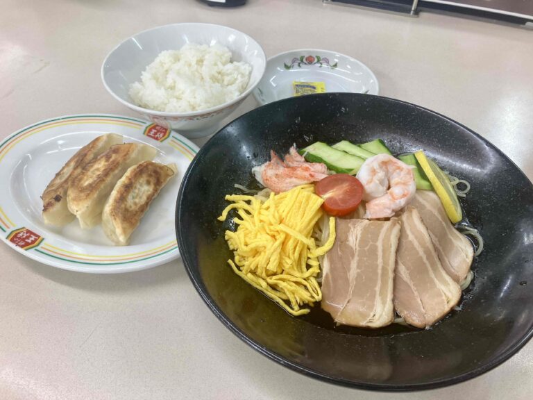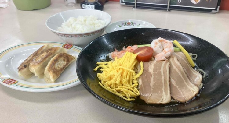今回は、夏季の限定メニューとして人気の「冷し中華」に餃子を加えてオリジナルセットをつくって食べてみました!