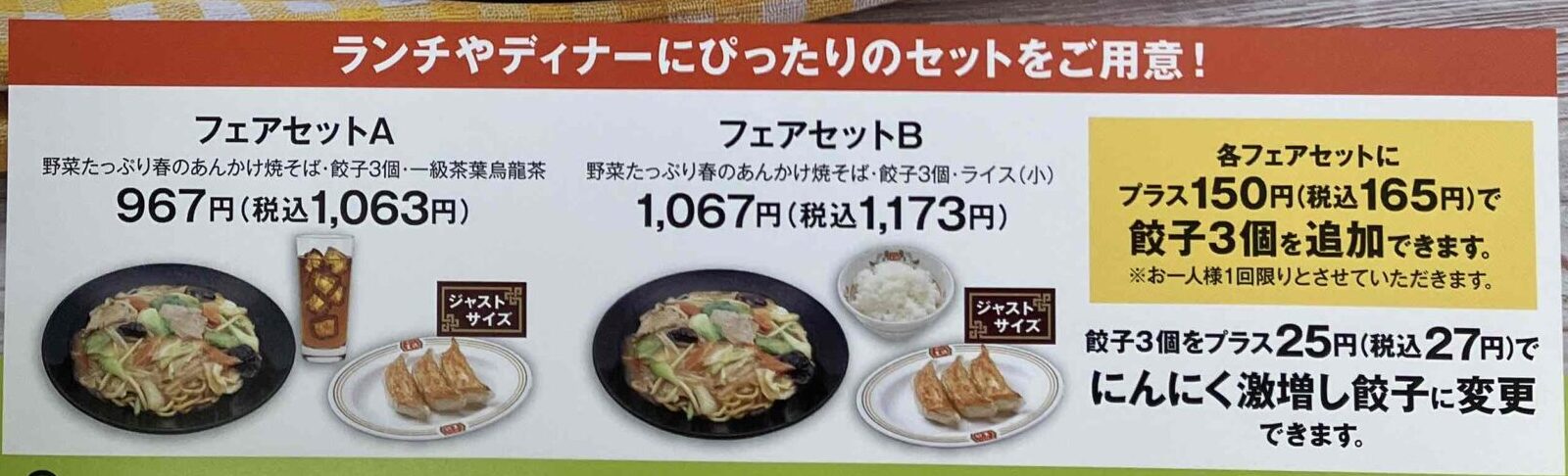 餃子の王将「春のあんかけ焼きそば・フェアセットB」