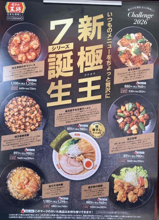 ぜひ、極王麻婆豆腐にジャストサイズメニューで、王将メニューをいいとこ取りしちゃってください。