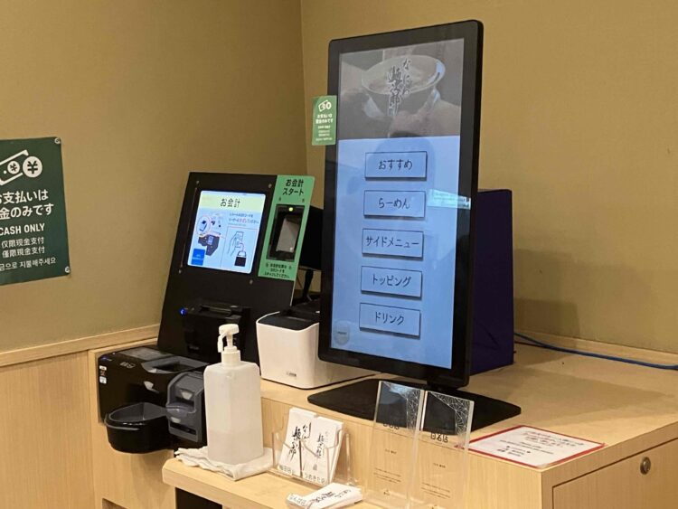 コチラの食券機で購入し、その奥にある精算機で先払いするシステム。