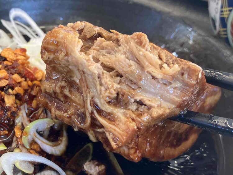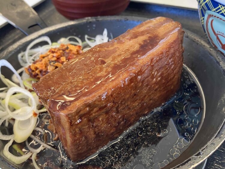 大きな岩のような豚の角煮が鍋の中にどっかりと腰を据えているよう。