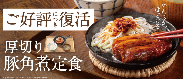 【吉野家】迫力満点!好評により復活!期間限定「厚切り豚角煮定食」を食べてみた
